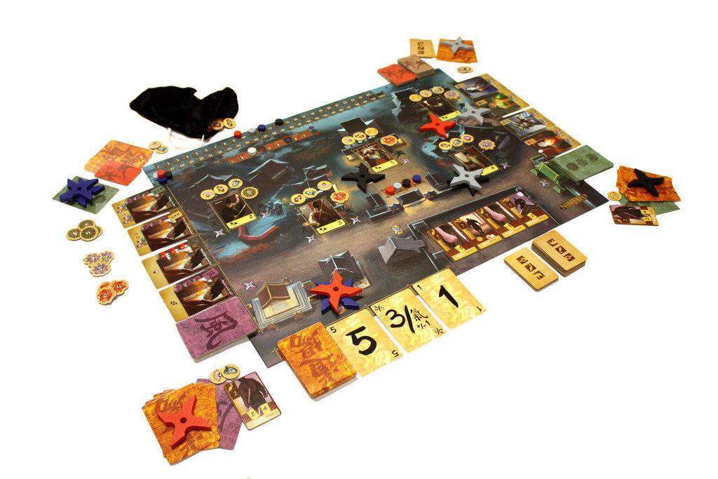Na losowy dobór kart dojo nie patrzę negatywnie. Maksymalnie mogę mieć ich na ręce 7, więc mam czym zarządzać. Jakiekolwiek posiadam karty, wybrane z puli odkrytych kart lub losowo z zakrytej talii, to sama decyduję o wyborze sposobu walki – siłą lub podstępem. W dodatku sama wybieram klan do ograbienia. Wiadomo, że z małą liczbą kart, bez wsparcia karty +/-1, nie zaatakuję klanu, w którym jest silny pierwszy strażnik i pilnie strzeżone skarby (żetony odwrócone na czerwoną stronę). Losowy dobór strażników też nie jest zły – przecież ninja nie wiedzieli na jak silnego wojownika trafią. Losowe rozmieszczenie żetonów przedmiotów nie stanowi żadnego problemu. Gracz ma do wyboru 5 domostw, przedmioty są widoczne i jest ich tylko 5 rodzajów. Nie ma więc problemu ze zdobyciem tego co się chce, poza tym, ceny kart plotek lub kart posłów w wielu przypadkach pozwalają na samodzielne podjęcie decyzji odnośnie rodzaju wymienianego przedmiotu. Przy 2 graczach może doskwierać niewielki wybór kart plotek i posłów, jednak zawsze znajdzie się coś przydatnego. Uważam, że losowość jest naprawdę dobrze wpleciona w całą mechanikę, a ciężar gry plasuje na poziomie średnio-ciężkich tytułów: gra jest prosta dla zaawansowanych graczy, a wymagająca dla początkujących.