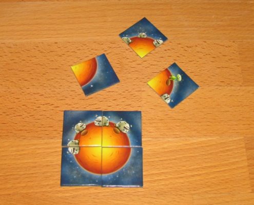 Gracze odkrywają planety i budują na nich stacje kosmiczne wykorzystując do tego kafelki. To co na nich się znajduje – całe stacje kosmiczne, ich fragmenty, a nawet kosmici – jest kluczowe w rozgrywce. Dana planeta przynosi punkty na koniec gry, gdy składa się z 4 pasujących do siebie kafelków wraz z punktowanymi zabudowaniami.