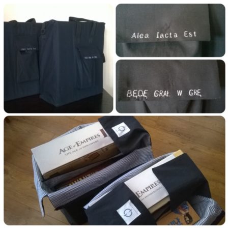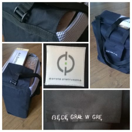 Mam torbę specjalnie na moje skarby. Torbę zaprojektowaną wedle życzenia. Wymiar, materiał, dodatki, własny napis. Wszystko moje. Wszystko dla moich skarbów. Dwie wielkie komory mieszczą w sobie bez problemu duże pudła, albo kilka całkiem małych. Jest przestrzeń, nic o siebie nie zawadza. Mała kieszeń na zewnątrz, zamykana na zatrzask, zmieści coś drobnego. Taką chciałam. Można mieć większą. Mam czarną torbę, by nie było widać na niej brudu. Taki uniwersalny kolor. Za to podszewkę mam fantazyjną, tak samo jak Scheherazade. Pasują do siebie. Mam też napis, jedyny i niepowtarzalny, i wiadomo do kogo ta torba należy. Gry wsuwane są od góry i można je swobodnie zamknąć, solidnym zamkiem błyskawicznym. Torbę mam na ramię, z regulowanym paskiem. Mogły być też uszy do noszenia w dłoni, albo jedno i drugie. Uwielbiam całkowicie spersonalizowane produkty. Produkty dopasowane do potrzeb i zachcianek klienta. Torba jest uszyta bardzo solidnie i elegancko. Dobrze się w niej nosi. Ma też cudownie przygotowaną instrukcję czyszczenia. Metkę pisaną odręcznie. Jest klimat, jest serce włożone w tę pracę.