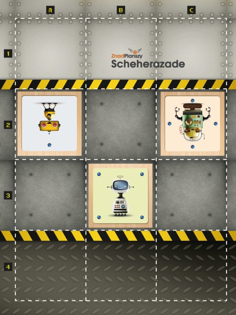- Jeśli położysz małego żółtego robota na polu A2, to przeciwnik zastanowi się czy zbić tego robota, bo jest chroniony przez zielonego i białego. Przeciwnik może nie chcieć stracić swojej figury.