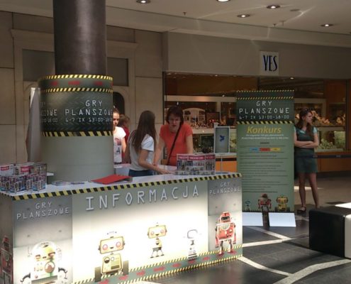 W końcu doczytałam, że partnerem akcji jest Dragonus – wypożyczalnia i sklep z grami planszowymi w Krakowie. O Dragonusie słyszałam dobre słowo przy okazji jednej z imprez planszówkowych w Krzeszowicach, w jakiej mogłam uczestniczyć. Planszówki i ktoś, kto się na nich zna zwiastowało ciekawą imprezę. I taka była z mojego punktu widzenia, bo w programie wypatrzyłam rozgrywki w Pojedynek robotów (Dobutsu shogi) w wersji XXL.