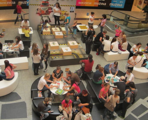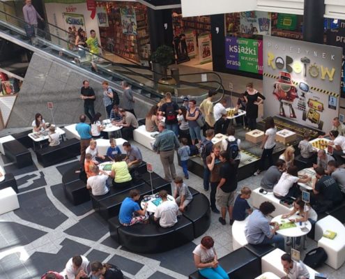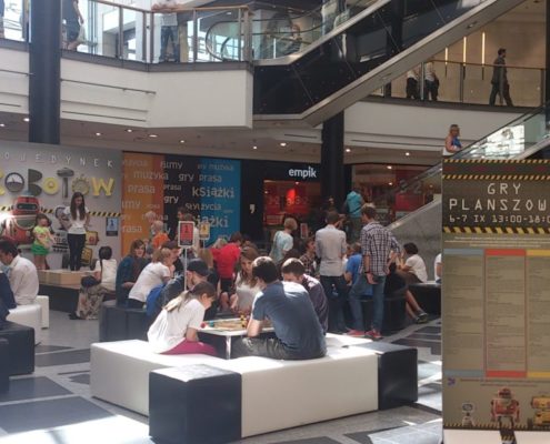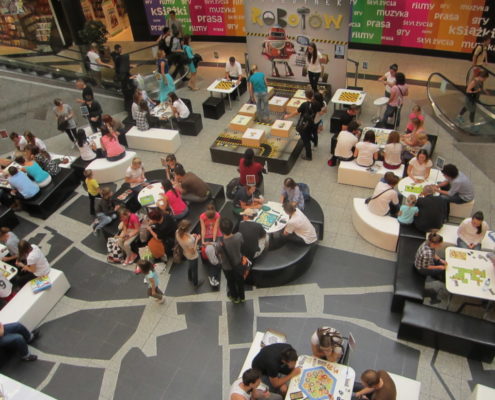Ludzi było mnóstwo, co mnie, planszówkowego hobbystę, bardzo cieszy. Prócz Pojedynku robotów można było również zagrać w inne gry, choćby: Pędzące żółwie, Carcassonne, Potwory w Tokio, Dixit, Wsiąść do Pociągu: Europa, Osadnicy z Catanu, Scrabble, Kolejka. Były też nagrody w postaci planszówek.