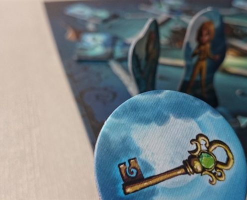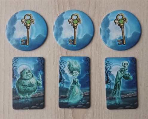 Na początku wydaje się, że ta rozgrywka to bułka z masłem, banał, prościzna. Tia… Szczerze powiedziawszy więcej razy przegraliśmy niż wygraliśmy i nie ważne czy to w 2, 3 czy 4 osoby. Gra jest losowa, ale z tej losowości wypływa ogrom napięcia. Bywa, że duch pojawia się tam gdzie nie ma pionków, pionki są daleko i trudno jest szybko dotrzeć w odpowiednie miejsce, albo pod rząd wypada to samo miejsce, by w konsekwencji zmienić warunek zakończenia gry (umieszczenie 4 kluczy na posągach aniołów) lub ją po prostu zakończyć (gdy pionek jest tam gdzie pojawiły się 3 duchy). Pusta ścianka na kości za każdym razem jest witana entuzjastycznie i z uczuciem ulgi. Największa panika jest wtedy, gdy na planszy pojawia się 8 żeton ducha, wieszczący koniec rozgrywki w następnej turze. Mimo tej losowości gracze muszą całą rozgrywkę obserwować planszę i zmieniającą się liczbę duchów w puli. Muszą też dobrze przemyśleć kierunek ruchu bądź pozostanie na danym polu. Duże napięcie pojawia się również w momencie gdy w 1 miejscu zgromadzą się 3 (i więcej) duchy. Gracze już nie mogą wejść na takie pole by je przegonić. Te żetony duchów są uwięzione na planszy i manipuluje się znacznie mniejszą ich liczbą. Te żetony zamykają też drogę graczom i bywa, że każda okrężna trasa przybliża raczej do przegranej. Choć wiecie, wszystko jest możliwe.