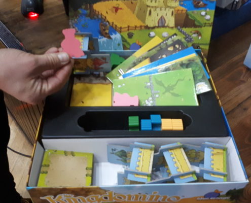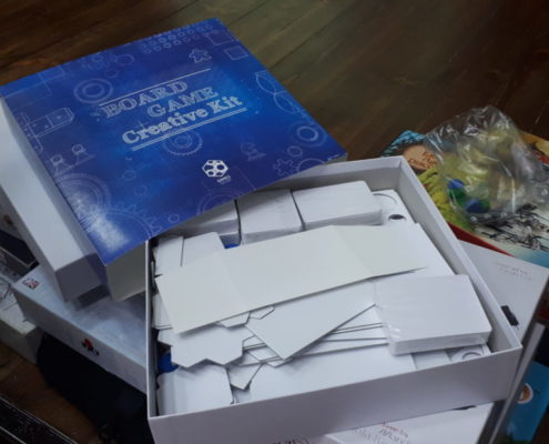 Druga część dotyczyła projektowania gier planszowych i zawodu jakim jest projektant gier. Ta część została bardziej rozwinięta dla gimnazjalistów. Marcin opowiedział nam o 10 ważnych elementach potrzebnych w czasie projektowania gier. Są to: matematyka, programowanie, umiejętności plastyczne, wiedza o kulturze, angielski, materiałoznawstwo, statystyka i analiza, wyobraźnia przestrzenna, programy komputerowe, kreatywność i wyobraźnia. Każdy element został ubarwiony przykładami. Na koniec tej części mogliśmy zobaczyć ewolucję grafik w wydanych grach autorstwa Violi i Marcina, posłuchać o kolejnych krokach w wydawaniu gier i jakie korzyści płyną z projektowania. Każdy krok od pomysłu do przygotowania finalnego prototypu został bardzo treściwie rozwinięty. Marcin pokazał również, że nie każdy prototyp może cieszyć się zainteresowaniem wydawców, ale tworzyć trzeba dalej.