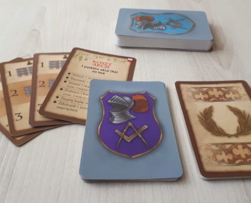 - Za 1 PA można dobrać 3 karty akcji z 10 i wybrać jedną z nich. Dopiero w następnej turze będzie można skorzystać z niej. Karty akcji pozwalają na drobne manipulacje segmentami, rycerzami czy też zwiększają limit PA w danej turze. Akcje są bardzo przydatne. W turze można zakupić maksymalnie 2 karty akcji. Zagranie każdej jest już darmowe.