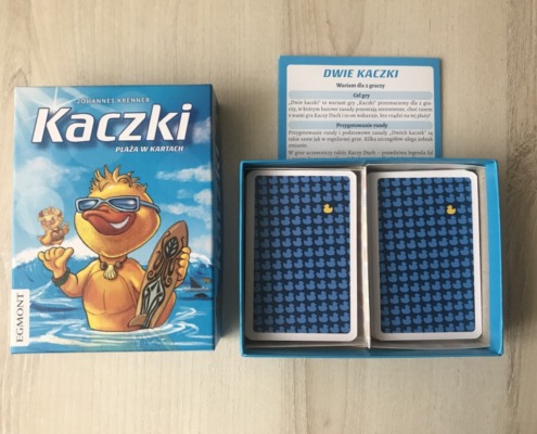 Kaczki to gra prosta w zasadach, wciągająca, no i bardzo dynamiczna. Wprawia w dobry humor, również sympatycznymi grafikami. Pozwala grać w 2-5 osób, ale im więcej graczy przy stole, tym trudniej o wygraną. Emocje są więc do samego końca gry. Tak się podoba, że chce się w nią zagrać jeszcze raz. No i małe pudełko zachęca do zabierania jej wszędzie ze sobą. Z córką polecamy.